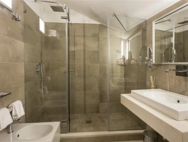 A sublime bedroom, tastefully furnished, features a comfortable king-size double bed or, if needed, two single beds, while the bathroom is equipped with a spacious shower and refined fixtures.