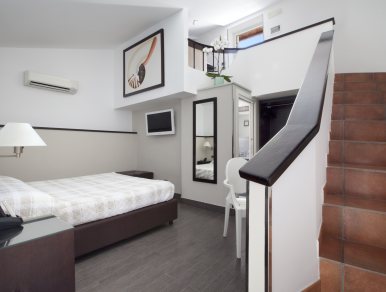 The Penthouse apartment is the jewel of the Magi House building. It is located on the top floor of the historic building in the center of Sorrento and is accessed through the attic terrace. The sloping roof and private terrace make this apartment the ideal retreat for couples looking for a modern loft in the center of Sorrento.