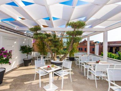 The terrace is open with its lounges to relax to bask in the sun or settle in with your favourite book if you prefer to sit and enjoy the quiet, away from the beach crowds.